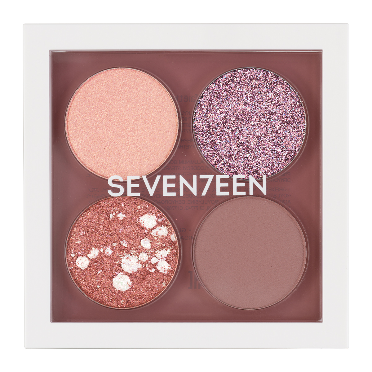 The Pink Love Palette by Seventeen contains 4 eyeshadows with buildable intensity that combined together flatter every eye color and skin tone. These 4 shades have excellent color payoff, remain vibrant all day without fading, and feature a light, soft texture that applies evenly and blends seamlessly for endless mix & match possibilities.